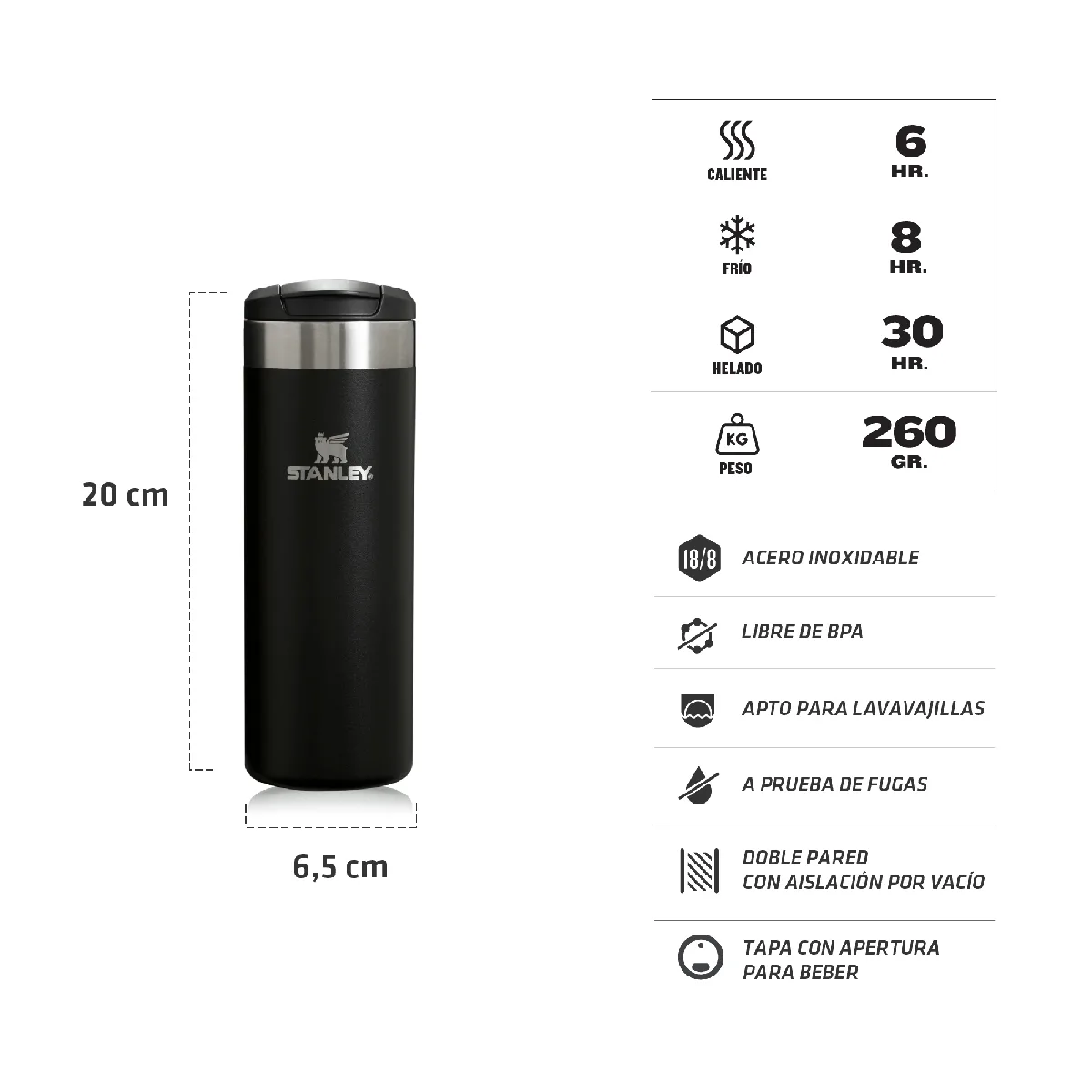 La botella térmica Stanley AeroLight de 473 ml es la opción más liviana para tu rutina. Con tecnología AeroLight™, es un 33% más ligera, ofrece tapa hermética a prueba de fugas y mantiene el frío por 8 horas, ideal para llevar en la mochila sin sumar peso extra.