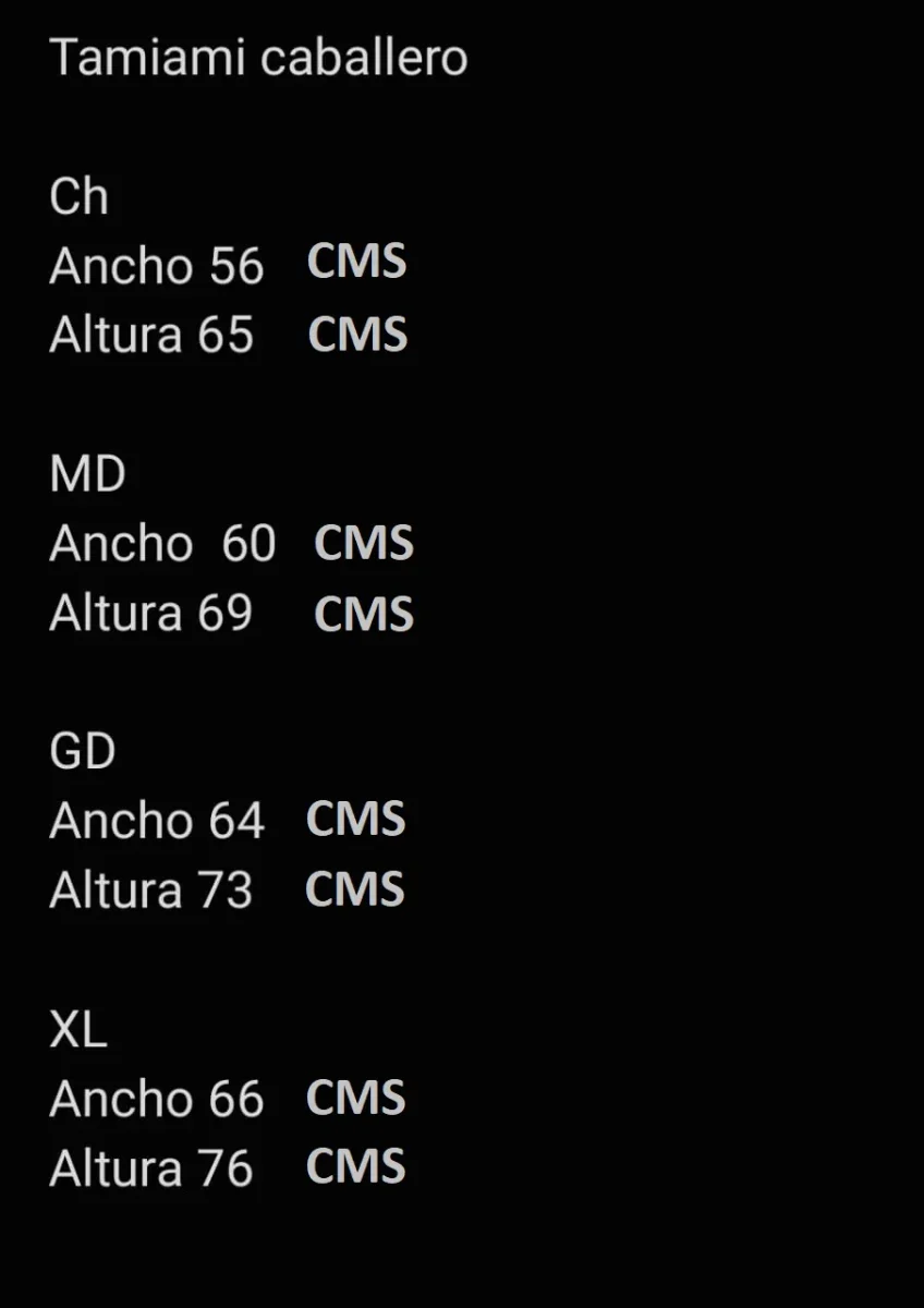 NOTA: ESTE MODELO ES MÁS AMPLIO DE LO NORMAL, EJEMPLO: SI USAS TALLA L (GRANDE) SE RECOMIENDA LA TALLA M (MEDIANA).