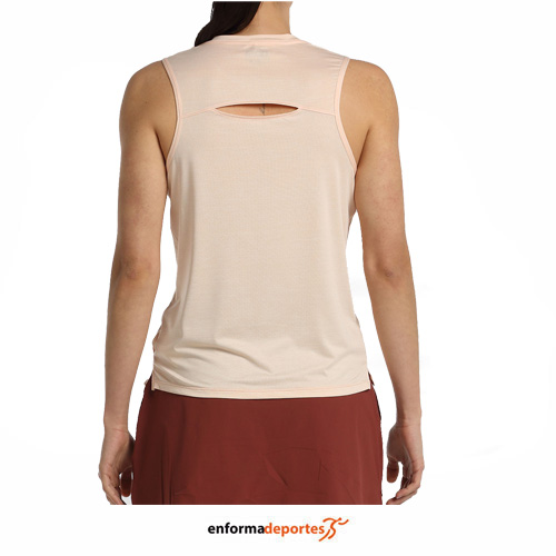 Camiseta mujer +8000 ALMEN, de tirantes, confeccionada en tejido de 100% poliéster rayado con acabado Quicker Dry, con cuello ligeramente en V, corte decorativo en la espalda y logo en el pecho, con acabado Drynamic, tejido con microfilamentos de poliéster, que ayudan a evaporar la humedad.