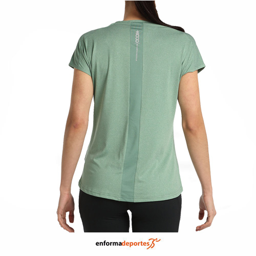 Camiseta mujer +8000 RIBEPA, de hombro caído, fitting standard con corte ergonómico lateral ligeramente entallado en la cintura, panel en espalda de rejilla, con logo estampado en delantero y espalda, confeccionada en tejido de poliéster con elastán en calidad Drynamic, tejido con microfilamentos de poliéster, que ayudan a evaporar la humedad.