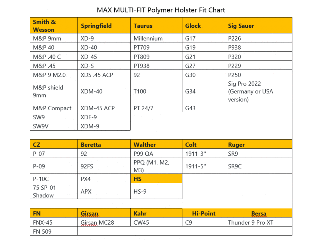 La funda se ajuste a la mayoría de las pistolas semiautomáticas compactas y de tamaño completo