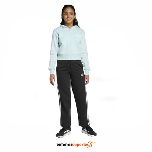Chandal junior ADIDAS JG 3S FL TS 240, confeccionado en suave tejido polar que proporciona calidez y comodidad, confeccionado en tejido algodón, con chaqueta con cierre con cremallera completa, con capucha y cintura y puños acanalados. Con pantalon con bolsillos laterales, cintura elastica con cordón ajustable.