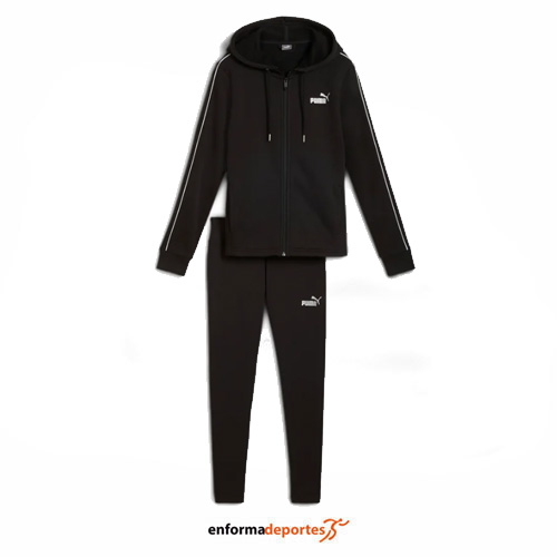 Chandal mujer PUMA METALLIC, confeccionado en tejido con al menos un 20 % de materiales reciclados, de corte estándar, con interior de forro polar de 280 g/m2, con parte de arriba con sudadera con capucha con cordones ajustables, cremallera completa y bolsillo laterales, con pantalon con bajos de tejido exterior.