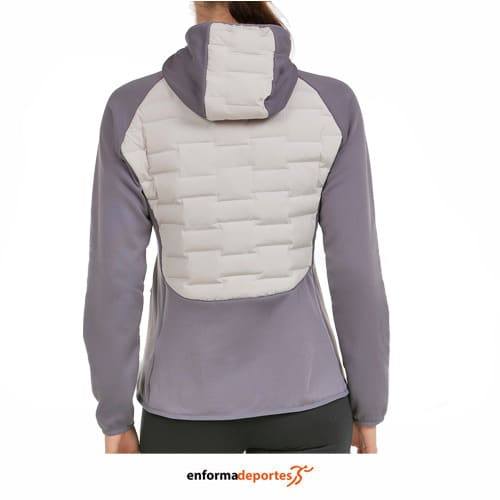 Anorack híbrido +8000 DOMBEYA, con espalda y delantero en tejido 3D, sin costuras, lo que aumenta la resistencia de la prenda al agua y al viento, confeccionado en tejido exterior taffeta de poliéster con acabado DWR y relleno Sorona Aura de Dupont, con mangas y laterales están realizadas en tejido de poliéster con 5% de elastán muy flexible y con interior de acabado polar, con bolsillos laterales con cremallera y capucha, puños y bajo recogidos con vivo elástico.