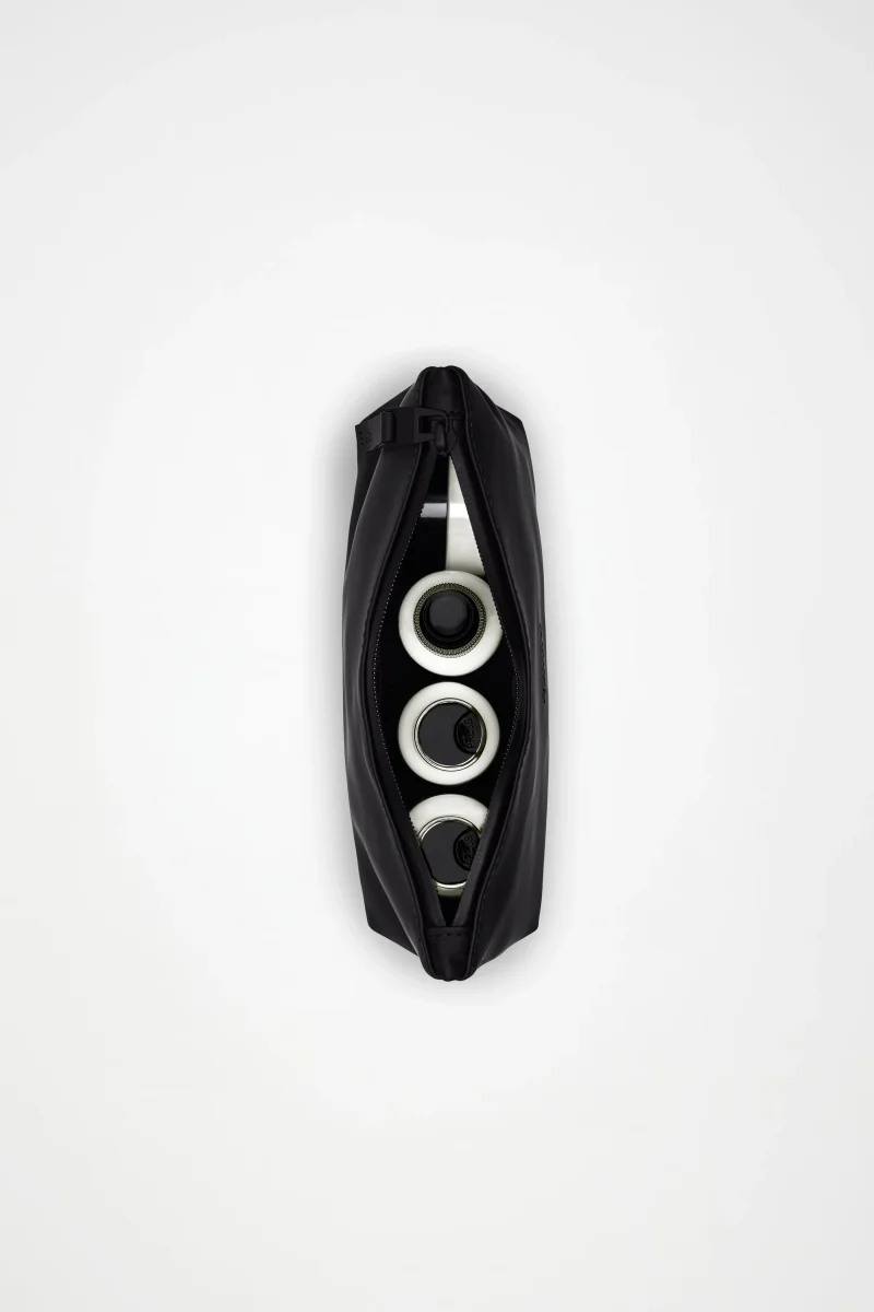 Su diseño se caracteriza por una silueta minimalista, suaves curvas en la base y un limpio diseño pespunteado en la abertura. El neceser se completa con un tirador de cremallera de TPU de tacto suave.