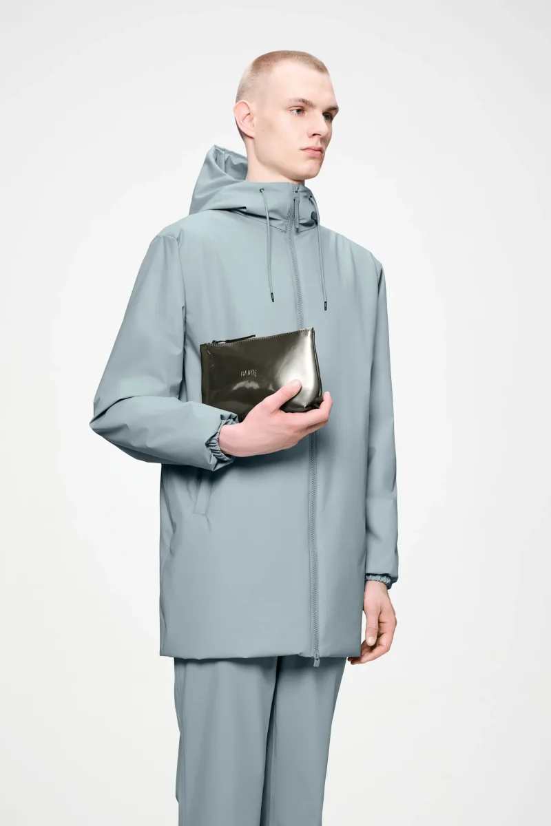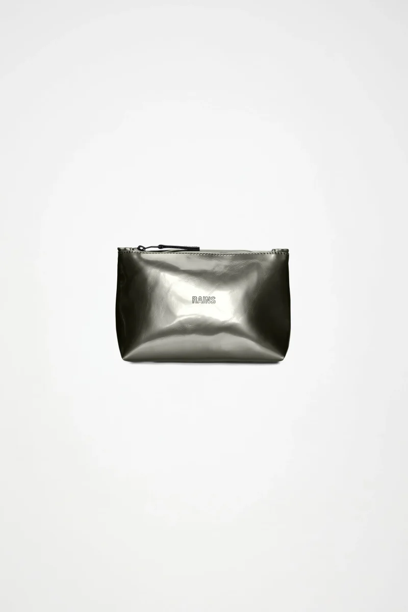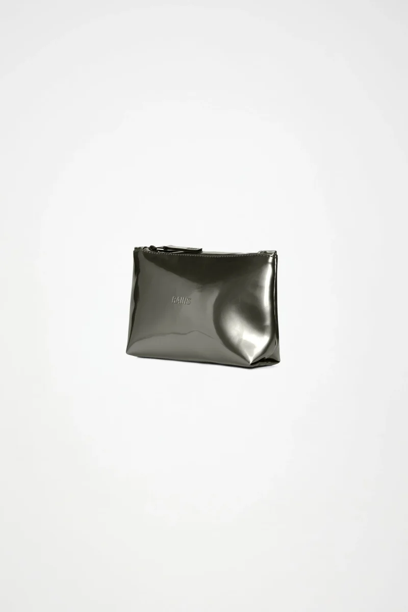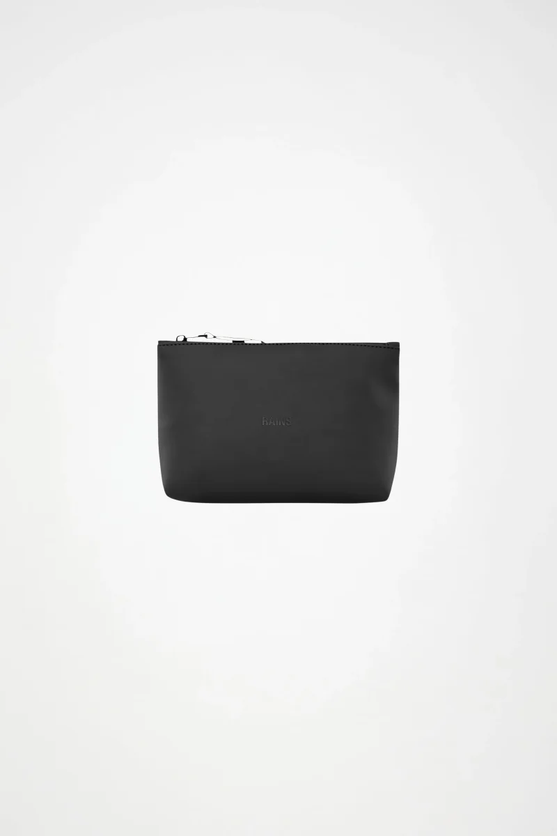 Cosmetic Bag está confeccionado en el tejido de PU impermeable característico de Rains, diseñado para ofrecer robustez en el transporte, durabilidad y un suave acabado.