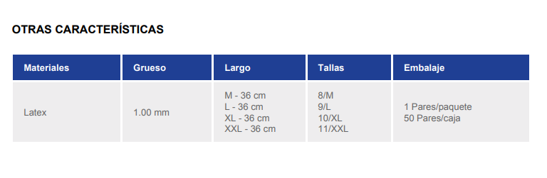 - Tipo de guante: Sin soporte / Retail