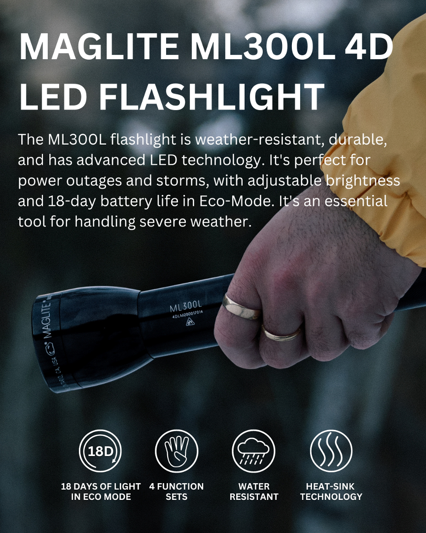 Ya sea usted un profesional que utiliza una linterna para trabajo o seguridad, un entusiasta de las actividades al aire libre que la lleva de acampada o un usuario ocasional que la desea para emergencias en casa o de viaje, nuestra nueva LED de celda D ML300L es la luz para todos sus necesidades.