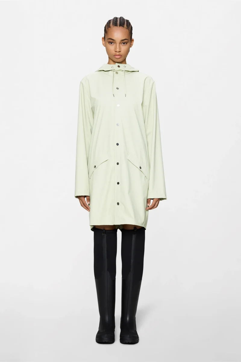 Long Jacket está confeccionada en el tejido de PU característico de Rains con costuras selladas. Su acabado es ligero y de tacto suave.