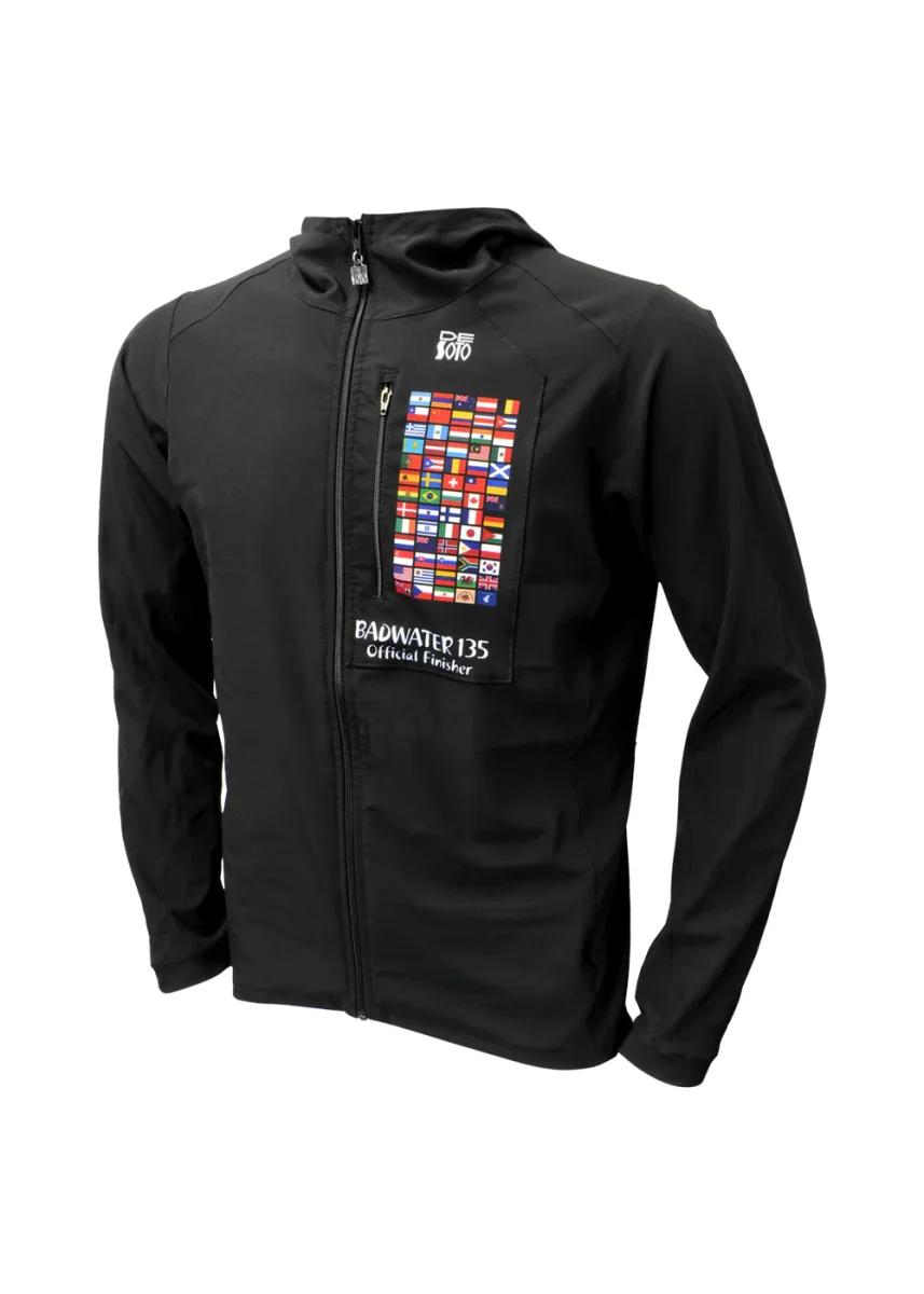 A collaboration between Emilio De Soto and Chris Kostman, the design features the flags of all past Badwater 135 finisher nations, making it a symbol of elite achievement.