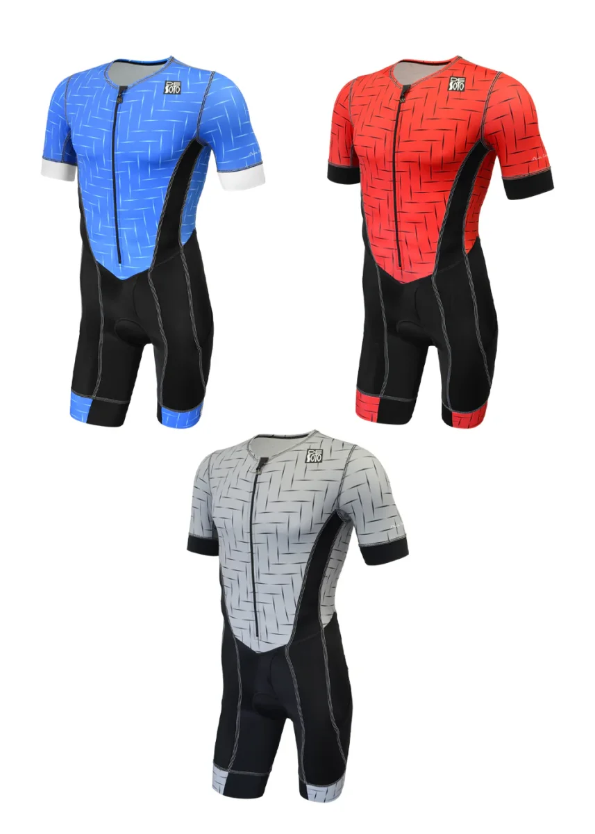The Forza Trisuit has Sleeves and the Fli-fly™ for quick relief on the go! Upper body made of De Soto innovative Skin Cooler 90™ Fabric for 90 UVB sun protection. Five utility pockets to fit all your racing needs, and even more features!