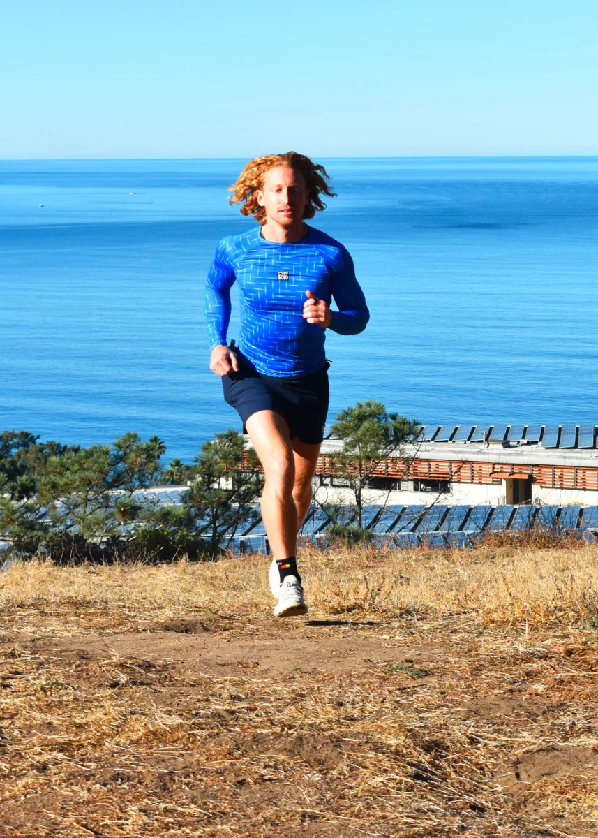 De Soto Sport keeps you cool and comfortable where ever the day may take you. This is an improved version of the Skin Cooler Long Sleeve. We shortened length of the top, and eliminated some vertical seams. We explain below the reasons why. Perfect for training and racing ultra distance or even as a base layer under a tech tee, a cycling jersey, or even a dress shirt.