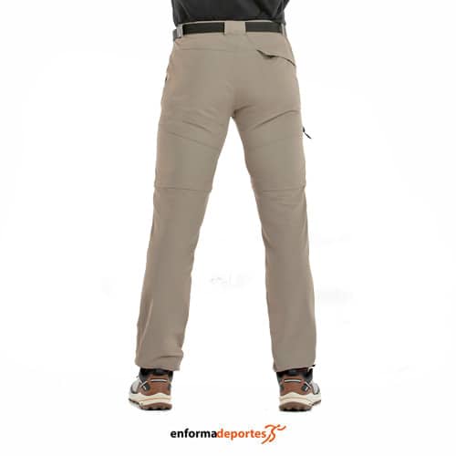 Pantalón desmontable hombre +8000 ESLOVA, confeccionado en tejido de nylon con acabado Quickerdry, que favorece la evacuación del sudor, con bolsillos laterales abiertos, 3º bolsillo con cremallera, bolsillo posterior bajo tapeta con cierre de botones a presión, con cinturilla ajustable con cinturón y bajo ajustable con tankas.