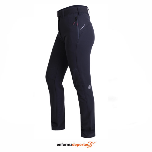 Pantalón mujer SPHERE PRO LOLA, confeccionado con tejido poliéster y elastano con tratamiento DWR repelente al agua, corta viento y transpirable, interior sin perchar, con cintura semi-elástica con cierre de botón a presión y cinturón elástico ajustable, dos bolsillos con cremalleras, pinzas en zona de rodillas, goma ajustable en los bajos, logos reflectantes.