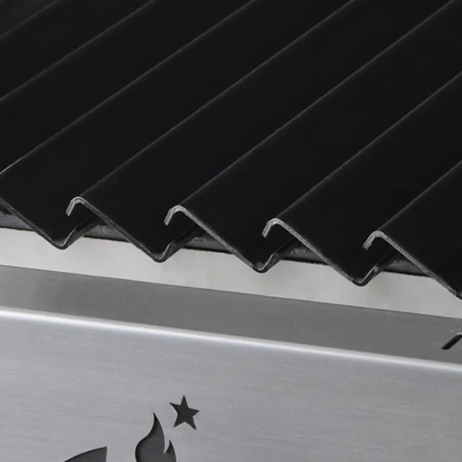 El diseño en Z de las rejillas asegura una transferencia de calor eficiente y previene inflamaciones al evitar el contacto de jugos y grasa con la llama.