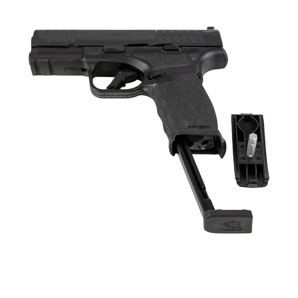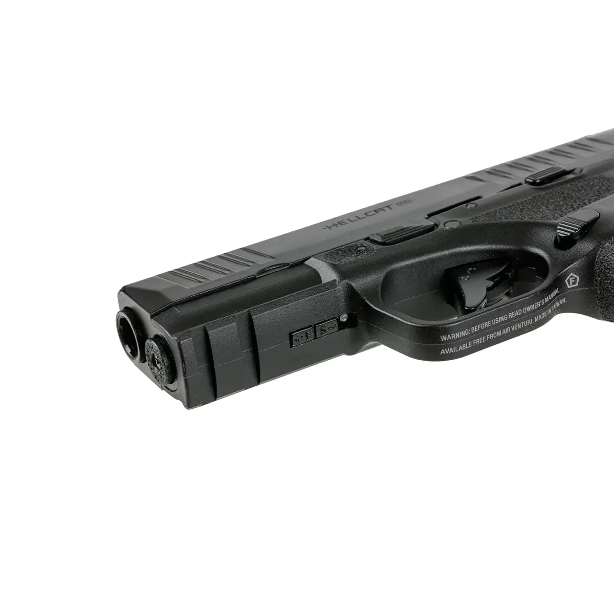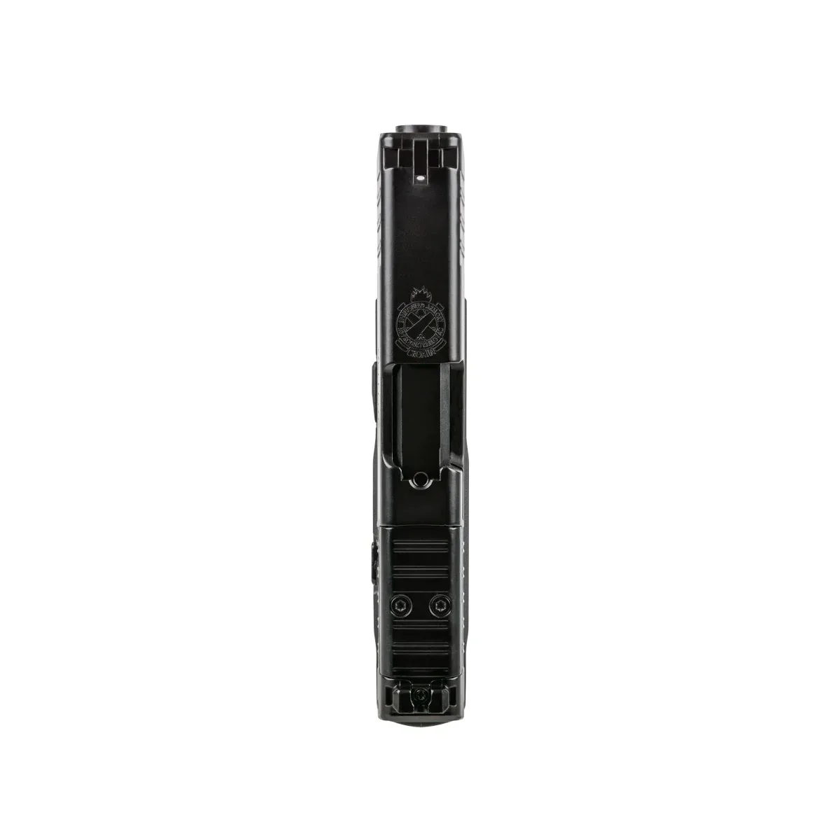Construida con corredera metálica y armazón de polímero texturado, combina durabilidad y ligereza (aprox 596 g) para un manejo equilibrado. El hop-up ajustable mejora la precisión y el control de la trayectoria, y el riel frontal Picatinny facilita la instalación de ópticas o linternas, convirtiéndola en una plataforma versátil para distintos usos.