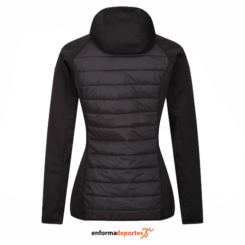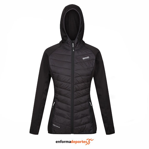 Softshell mujer REGATTA ANDRESON VIII, confeccionado en tejido de punto con respaldo cálido Extol Stretch, con paneles de poliamida en el cuerpo, aislamiento sintético reciclado Warmloft con tacto de plumón, compresible, con relleno ligero, 2 bolsillos inferiores con cremallera, ribete elástico en la abertura de la capucha fija, puños y dobladillo, con acabado repelente al agua.