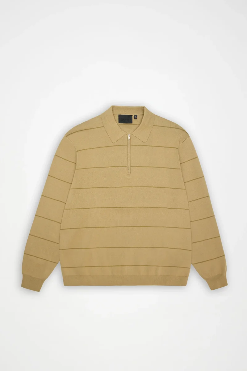 Diseñado tanto para el trabajo como para el ocio, el polo de punto a rayas Striped Knit Polo está confeccionado en punto de algodón suave y transpirable, con un acabado limpio y vanguardista. La textura a rayas en un tono apagado aporta un toque de estética estudiantil. El diseño con cremallera de un cuarto, el cuello camisero y los puños de canalé y el corte relajado contribuyen a que el modelo resulte refinado e informal a la vez. La manga larga ofrece mayor cobertura para los días más frescos.