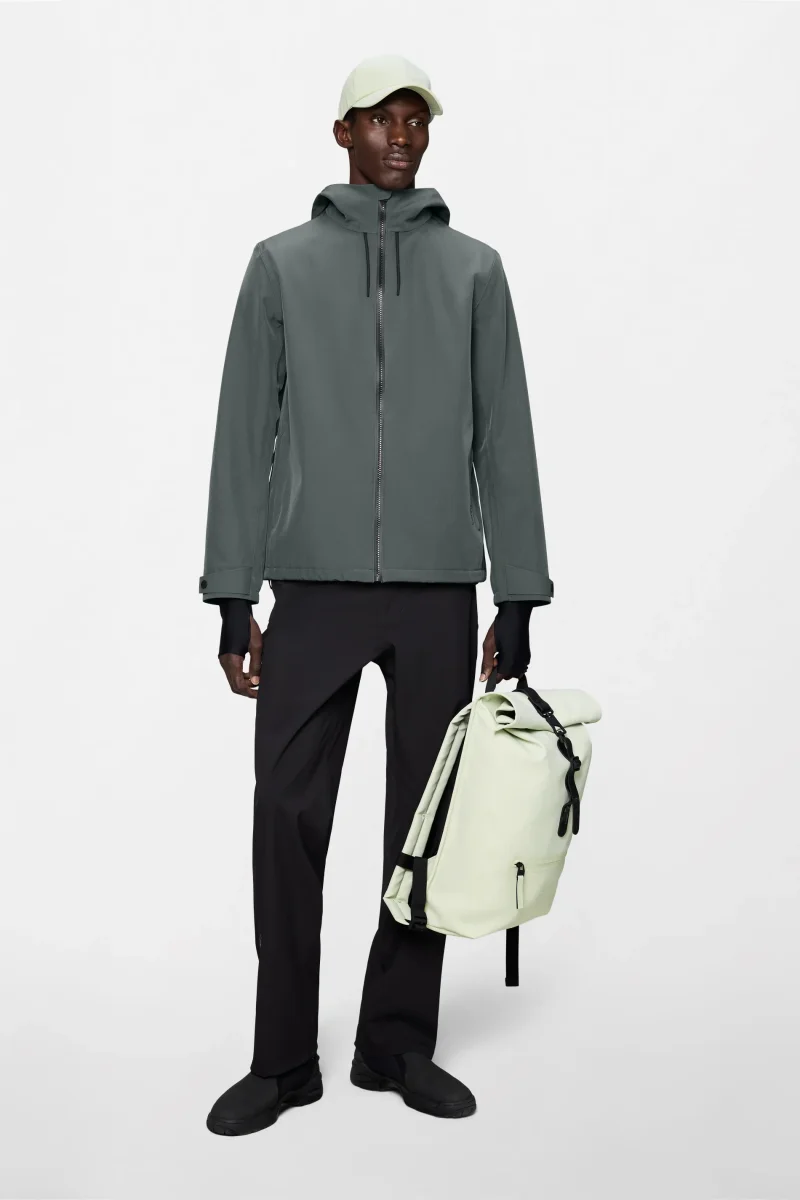 Esta chaqueta está diseñada con bolsillos laterales con cierre de cremallera y puños con elástico incorporado y solapa termosellada ajustable. Un detalle engomado con la marca añade un toque de contraste a su acabado minimalista.