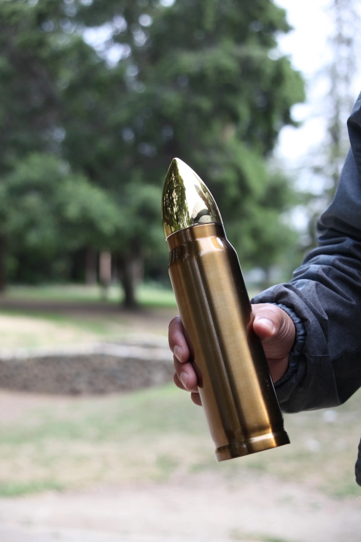 La botella termo Bullet de Caliber Gourmet está diseñada para parecerse a una bala y mantendrá su bebida favorita, caliente o fría, hasta por 9 a 12 horas.