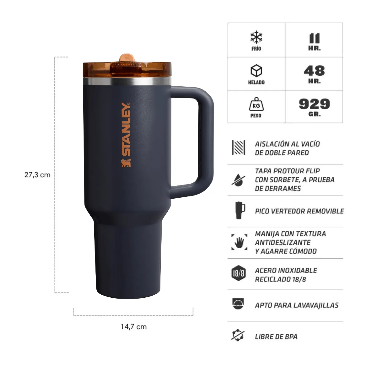 El Vaso Stanley Quencher es el complemento esencial de Camping y aventura. Mantené tu hidratación con agua helada por 48 horas en cualquier terreno.