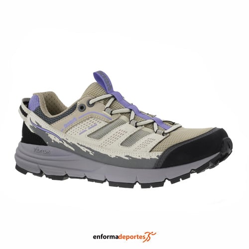 Zapatilla mujer BESTARD COOLWAVE, ultraligera, incorpora aberturas estratégicas con rejilla, que optimizan la circulación del aire para evitar el sobrecalentamiento del pie, al tiempo que bloquean la entrada de piedrecillas y otros residuos, con puntera reforzada de caucho ofrece mayor durabilidad y protección en terrenos irregulares, mientras que la suela Vibram Fuga con compuesto Megagrip garantiza un agarre excepcional en distintos tipos de superficie. Además, su mediasuela de EVA ultraligera proporciona una amortiguación óptima y una pisada natural.