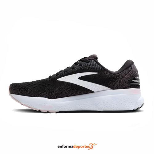 Zapatilla mujer BROOKS GHOST 16, ideal para corredoras que buscan comodidad y soporte, confeccionada en su parte superior de malla para mayor transpirabilidad y un mejor ajuste, con excelente amortiguación gracias a la tecnología DNA LOFT v3 que proporciona una pisada suave y receptiva, con cierre con cordones, con talón acolchado y con suela con Crash Pad segmentado, que asegura transiciones suaves y fluidas durante la carrera.