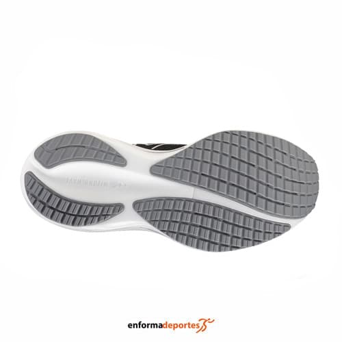 Zapatilla mujer MIZUNO WAVE RIDER 29, ideal para la práctica de running en asfalto, confeccionada en tejido y material reciclado, con mediasuela Enerzy NXT infusionada con nitrógeno, que ofrece una pisada más suave, reactiva y fluida, con grosor de mediasuela incrementado en +2 mm, placa Wave vegetal hecha con Elastollan® N (a base de biomasa) y drop 10mm.